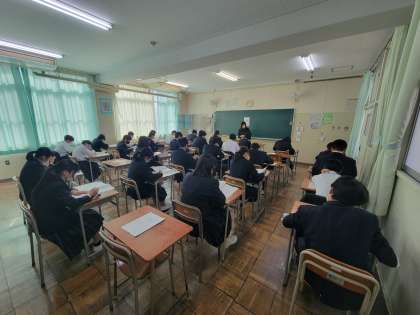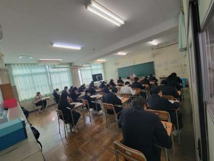 本日は、朝から3年生の全国学力学習状況等調査を行っています。どのクラスも真剣に取り組んでいます。皆さん、頑張ってください。
