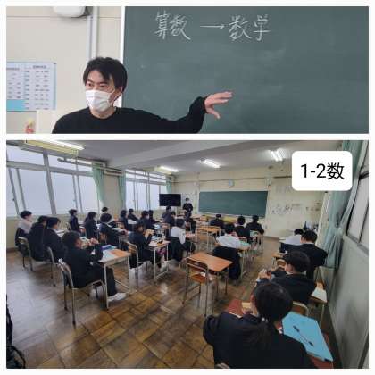 本日の1年生の授業のようすです。算数から数学に名前が変わって、何が違うのかをみんなで考える授業をしており、みんな一生懸命考えていました。