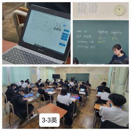 本日の3年生の授業のようすです。先生の質問に対して積極的に発言している人もいました。また、国語では、辞書を使って漢字や言葉の意味を調べながら学習していました。