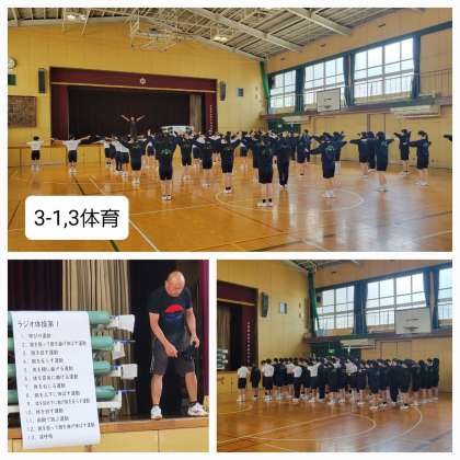 本日の3年生の授業のようすです。皆さん、積極的に授業を受けています。体育の授業では、集団行動とラジオ体操の練習をしていましたが、かけ声の大きさや行動の機敏さもさすが3年生という姿勢がみられました。これからも、がんばってください。
