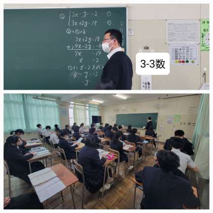 本日の3年生の授業のようすです。どのクラスも熱心に取り組んでいます。この調子で頑張ってください。