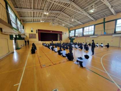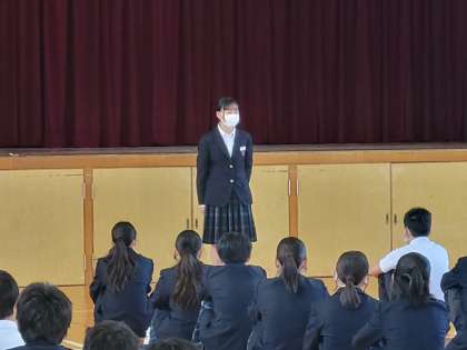 本日は、朝から2年生の学年集会を行っています。代表の人からスマホを使い過ぎると、目がドライアイになってしまいますので注意しましょう、と話してくれました。