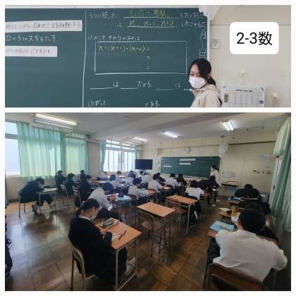 本日の2年生の授業のようすです。数学では、文字を使って、整数の性質を説明するという難しい分野を習っていました。最初からかける人はいませんから、まずはパターンを覚えて取り組んで見てください。