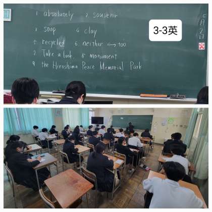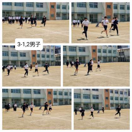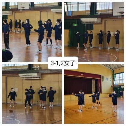 本日の3年生の授業のようすです。英語の授業では、小テストからのスタートです。体育の授業では、男子は50m走、この後2人ずつ勝負していました。女子はダンスです。どの班も一生懸命練習していて上手でした。完成が楽しみです。