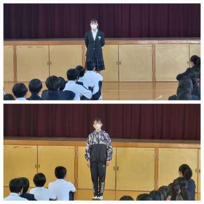 今日は朝から2年生が学年集会を行いました。代表の生徒から、「ゴールデンウィークが終わりましたが、頑張りましょう」というお話と担当の先生から、「一人暮らしを始めてご飯や掃除をしてくれていた家族に改めて感謝の気持ちを持ちました」というお話がありました。