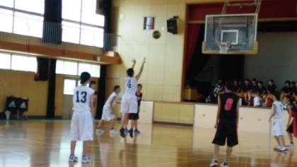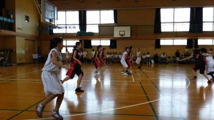 女子バスケットボール部の公式戦のようすです。全員がしっかり声を出し、プレイに応援に全力を出していました。