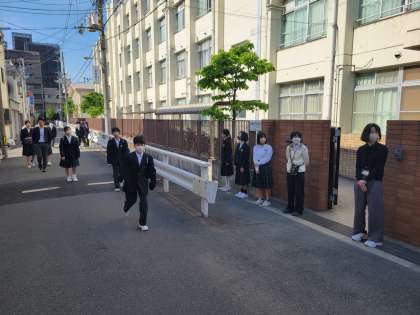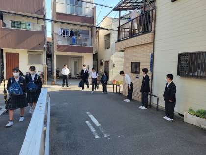 本日は、生活委員の人が門に立ってあいさつ運動をしてくれています。大きな声で「おはようございます」と気持ちのいいあいさつをしてくれていました。