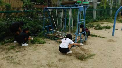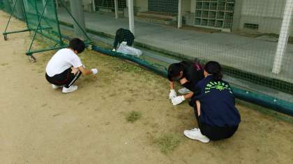 本日は、女子バレーボール部が校庭の雑草ひきをしてくれました。本校の部活動では、それぞれの活動での技術を磨くだけではなく、ボランティアをとおして、人間としての成長を目指しています。