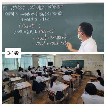 本日の3年生の授業のようすです。明日からのテストに向けて、授業の後半は自習形式のクラスもありました。数学では、文字と因数分解を使った証明です。皆さん、難しいですが諦めずに復習をしてくださいね。