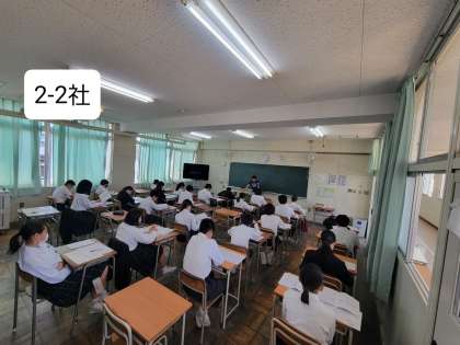 本日の2年生の授業のようすです。2年生ではこの時間はすべてのクラスでテスト返却でした。