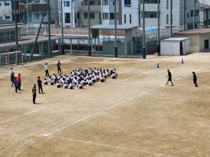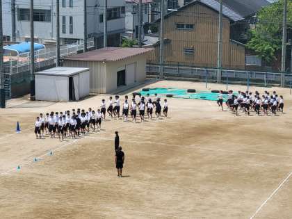 1年生の体育大会学年練習のようすです。声も大きく元気に練習しています。本番に向けて一致団結して頑張ってください。