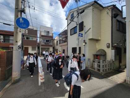 本日の朝の登校のようすです。地域の方や生活委員の人もおはよう運動に参加してくれています。ありがとうございます。