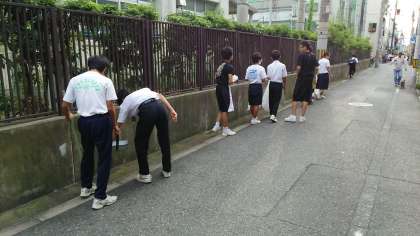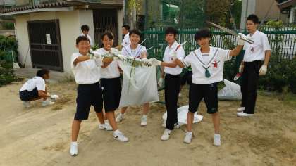 20名をこえる地域の方と、113名の生徒が、共同で校内緑化および清掃に取り組みました。校内の雑草引きや校外清掃も行い、とてもきれいになりました。