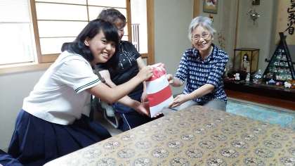 今年も、日ごろから大変お世話になっている皆さんへ、心をこめて手作りのお土産をつくりました。布で巾着袋をつくり、刺繍を施し、心をこめた感謝のメッセージをつけました。皆さんから、とても喜んでいただきました。PTAのお母さん方も、本当にありがとうございました。