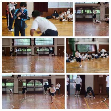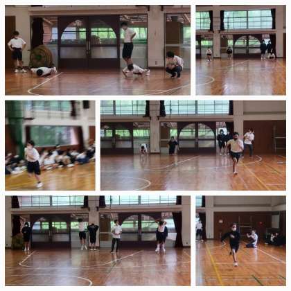 体育館で室内レクリエーションを行っています。次は、体力、運、反射神経が試されるリレーです。