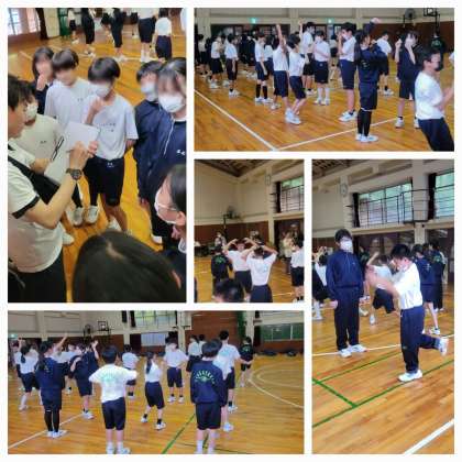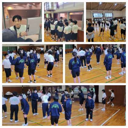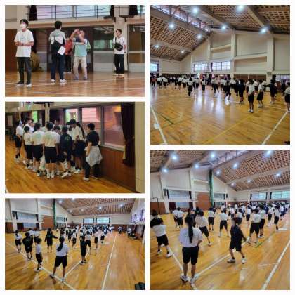 体育館で室内レクリエーションを行っています。次は、ジェスチャー伝言ゲームです。はたして、正確に伝わるでしょうか?