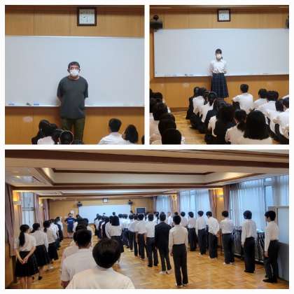 本日は朝から2年生が学年集会を行っています。生徒代表の人から、最近授業で前向きに取り組めていない人はいませんか?頑張りましょうというお話をしてくれました。