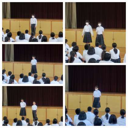 本日は朝から1年生が学年集会を行っています。学級代表が各クラスの良いところ悪いところを話あった結果を発表してくれました。今後、良いところはどんどん伸ばし、悪いところはみんなで改善していけるクラスを作ってください。