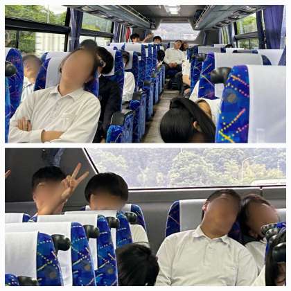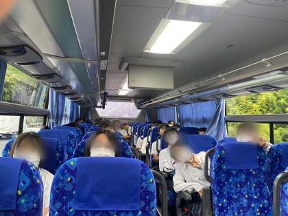 宿へと向かうバス内では、疲れて寝ている人が多いところとずっと歌っているところなどさまざまです。