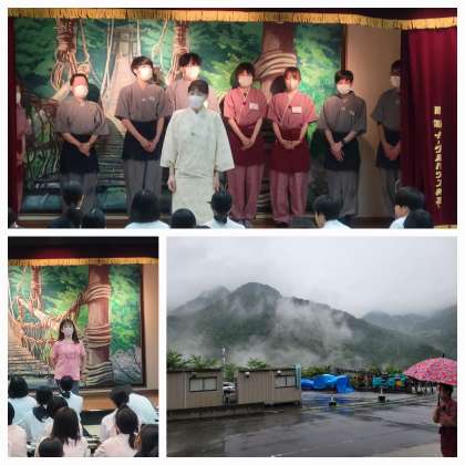 朝食後、退館式を行いました。代表の人からホテルの女将さんやスタッフの方にあいさつをしてくれました。あらかじめ用意したものではなく、昨日から感じたホテルの快適さやスタッフの人のあたたかさに対するお礼を心から伝えてくれました。