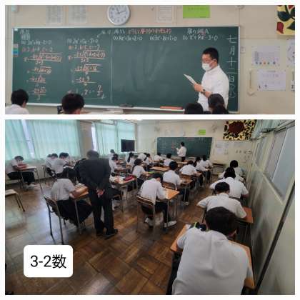 本日の3年生の授業のようすです。数学では2次方程式の解の公式を利用して解を求める練習をしていました。皆さん、解の公式は覚えましたか?