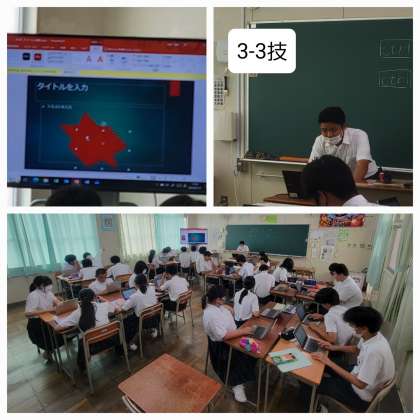 技術では、パワーポイントのアニメーション機能を使いせるように課題に取り組んでいました。