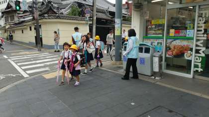 校区内の数か所で、地域の方が、登校時してくる子どもたちの見守りをしてくださっています。不審者対策や交通安全対策で効果をあげています。地域の皆さん、本当にありがとうございます。