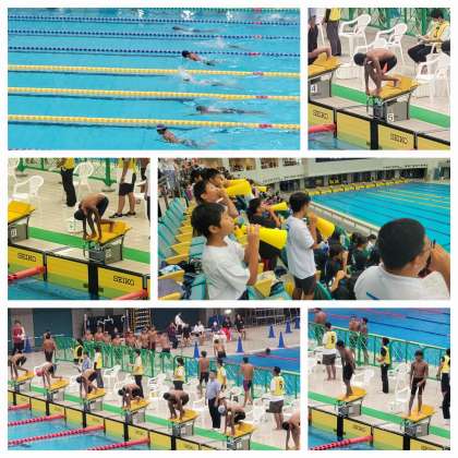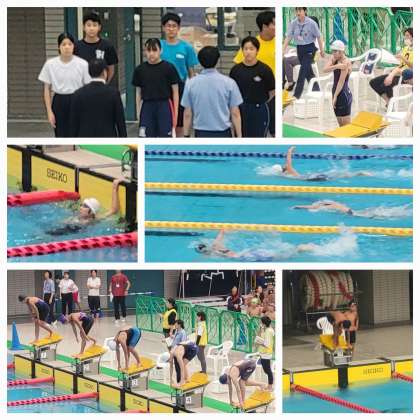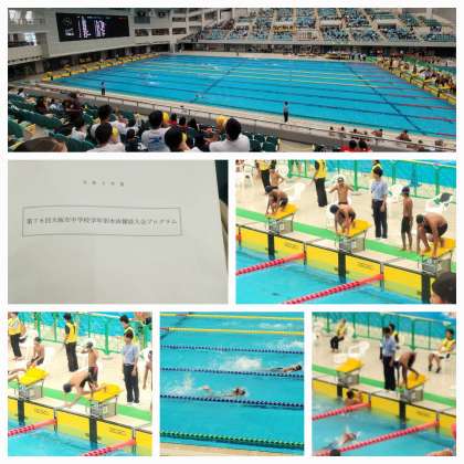 本日は、水泳部が大阪プールにて大阪市中学校学年別水泳競技会に参加しました。皆さん、自由型、平泳ぎ、背泳ぎなど各出場種目に一生懸命ベストを尽くしていました。また、客席から熱のこもった応援もしていました。