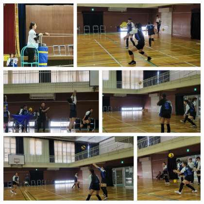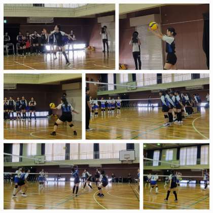 バレーボール部が公式戦に臨みました。負けたら3年生が引退となる最後の大会です。アップの練習から気合いが入っていました。