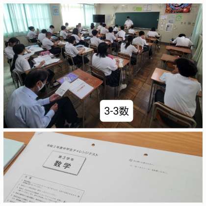 本日の3年生の授業のようすです。数学ではチャレンジテストの対策で過去問を練習していました。