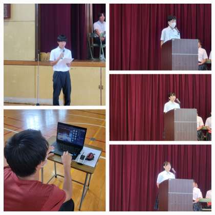 本日は後期の生徒会役員を決める演説会を体育館から教室へオンライン配信で行いました。