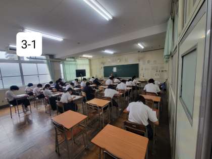 本日は、中間テスト1日目です。皆さん、真剣な表情で取り組んでいます。頑張ってください。