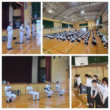 10月10日、中学校にオリックスバファローズの元現役選手が4名来てくださり、全校生徒の前で講演を行っていただきました。