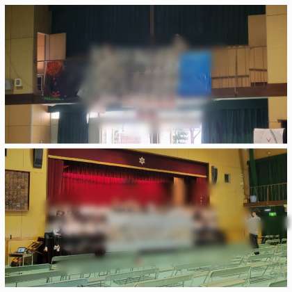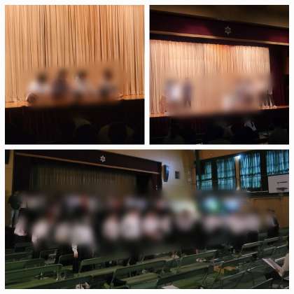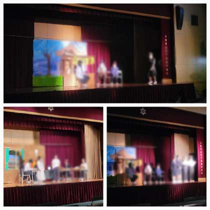 明日は文化発表会舞台の部です。本日は、各学年が最後のリハーサルをしています。本日のホームページではモザイクを強めにかけています。明日の発表を楽しみにしてください。