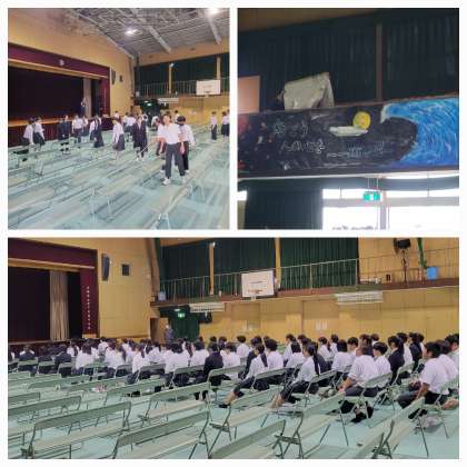 本日は2年生が、明日の文化発表会に向けて準備をしてくれています。2年生の皆さん、ありがとうございます。