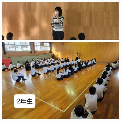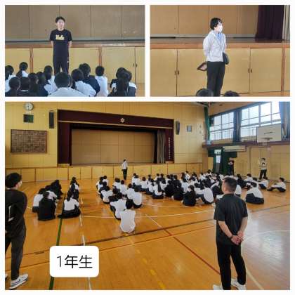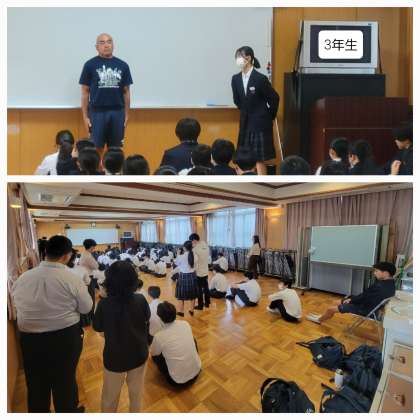 本日も朝からそれぞれの学年で集会を行っています。担当の先生がいろいろなお話をしてくれていました。