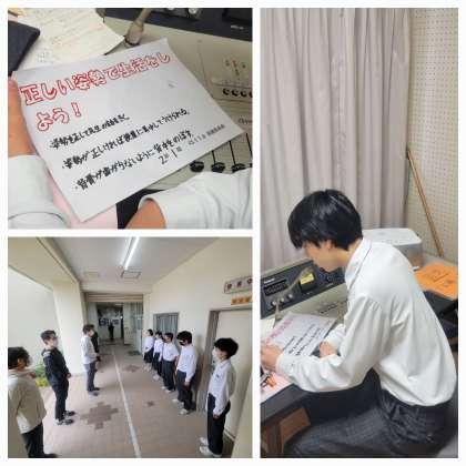 本日は、朝から放送による全校集会を行いました。校長先生のお話のあと、保健委員からの今月の目標を発表してくれました。また、生徒会から1年生役員の人が、文化発表会についての感想を立派にお話してくれました。