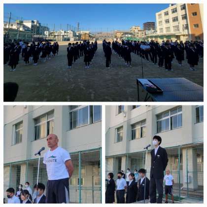 生徒会の担当の人からは、プロ野球日本シリーズでの阪神対オリックスの激闘からチームワークの大切さのお話をしてくれました。