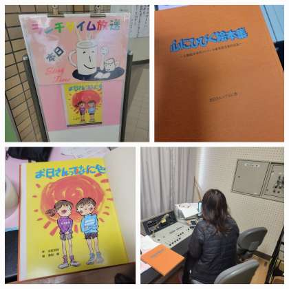 本日は、お昼のランチタイム放送を行いました。本日は、心に響く絵本集の中から「お日さんってなに色」を朗読してくれました。見る人によって、お日さまの色はそれぞれ違うけど、どの色もみんな本当の色というお話です。