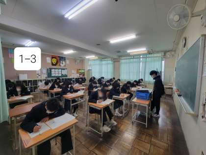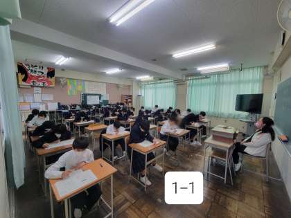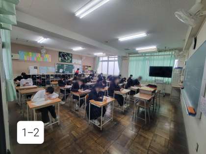 期末テスト2日目のようすです。皆さん、真剣な表情で取り組んでいます。頑張ってください。
