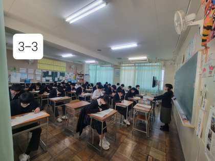 本日は、朝から3年生が実力テストに臨んでいます。進路を決める大切なテストです。皆さん、頑張ってください。