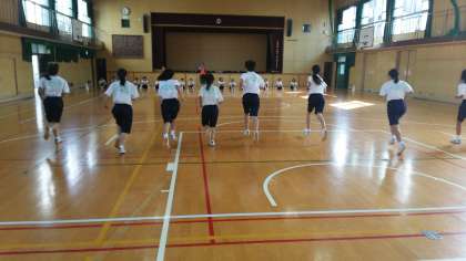1年生女子の保健体育の授業のようすです。体力テストでシャトルランを実施しているところです。持久力を要求される種目ですが、どの生徒も、それぞれの体力に応じて精一杯頑張っていました。