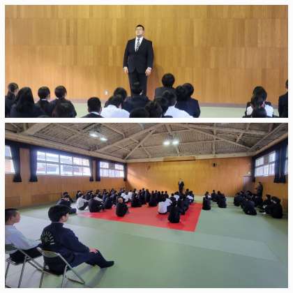本日は朝から、2,3年生が学年集会を行いました。担当の人や先生から冬休みのすごい方や2学期を振り返ってのお話をしてくれました。