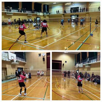 当日まで先輩や1年生が一緒になってアドバイスをしながら練習しての試合でした。全員が不戦勝を含めて1勝を経験し、そのうち1つのペアは3位入賞することができました。そのペアの試合では21点マッチで15対20と劣性で、あと1点取られたら負けという状況でした。すごい緊張感の中でチームメイトや保護者の方々からの応援を力にかえて、声を出しあい、自分たちが練習してきたことを信じて得点を重ねてデュースに追いつき、大逆転をしてみんなで喜び合いました。それぞれの試合で自己ベストを出した各選手に拍手です。