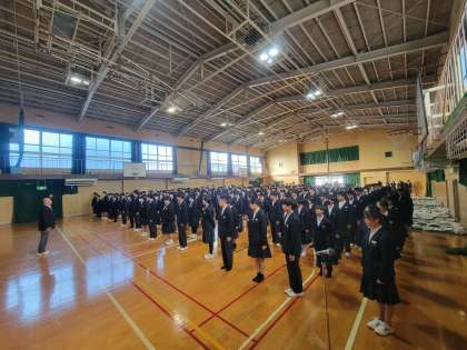 本日から3学期が始まりました。始業式のようすです。元旦から能登半島地震とその影響による津波、航空機事故と痛ましい大変なことが起こっています。追悼の意を表したいと思います。