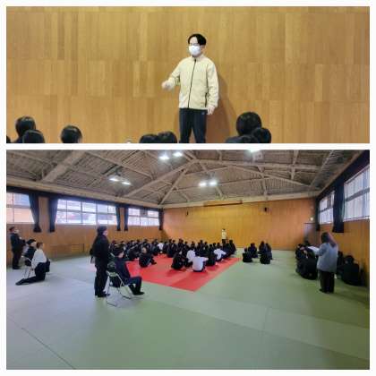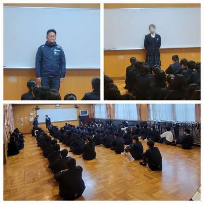 本日は朝からそれぞれ場所で学年集会を行いました。