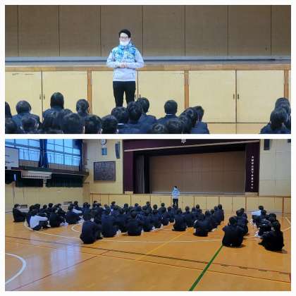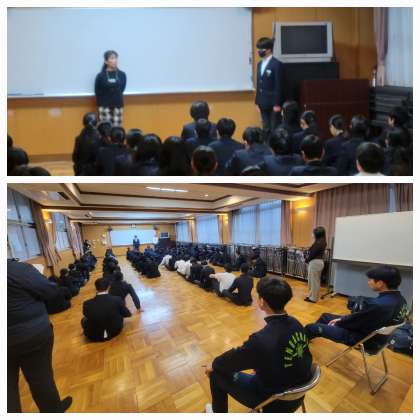本日は朝からそれぞれの場所で学年集会を行っています。担当の先生から、週始めはなかなか気持ちが乗らないのはわかりますが頑張っていきましょうというお話や周りの人と互いに認め合うことが大切ですというお話などがありました。