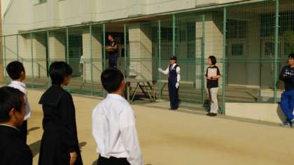 西成警察署の交通課の警察官に来ていただき、交通安全講習会を開催しました。DVDなどで実際の事故事例などを学習したあと、校庭で自転車の2人乗りや携帯電話で話しながらの運転が、どれだけ危険であるかを代表の生徒に体験してもらいました。交通事故から身を守るために役立つ学習をしました。