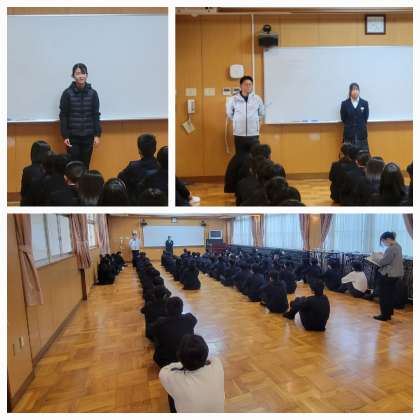 3年生では、担当の人がこれからの人とのつながり方についていいお話をしてくれました。また先生からは、自身の中学生時代のエピソードをお話してくれました。