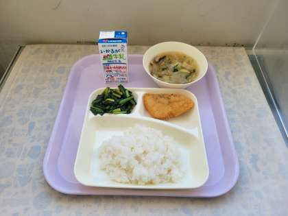 本日の給食は、たらフライ、うすくず汁、ほうれんそうのおひたしでした。たらフライはサクサクでごはんとの相性もぴったりでおいしかったです。うすくず汁は、とろみがあり寒い日にはあったまる汁物でした。